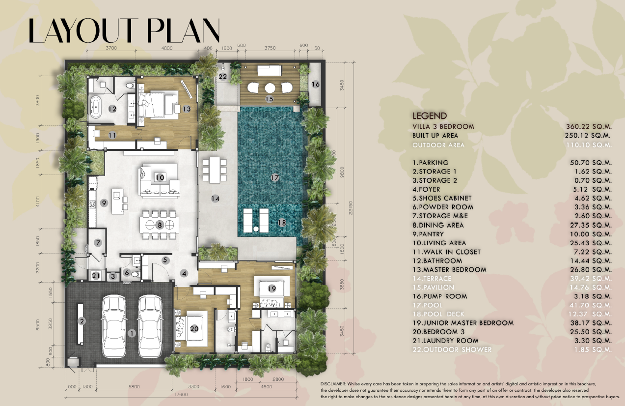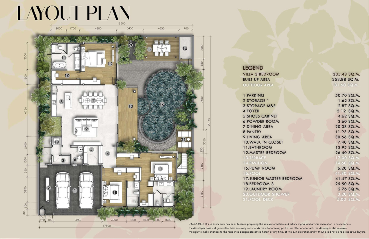 Each villa boasts three spacious bedrooms and four elegantly appointed bathrooms, crafted for both functionality and comfort. Designed with top-tier materials and premium finishes, every detail reflects refined craftsmanship. With expansive living spaces ranging from 325 to 375 sqm on land plots of 490 to 827 sqm, these residences offer ample room for luxurious living.